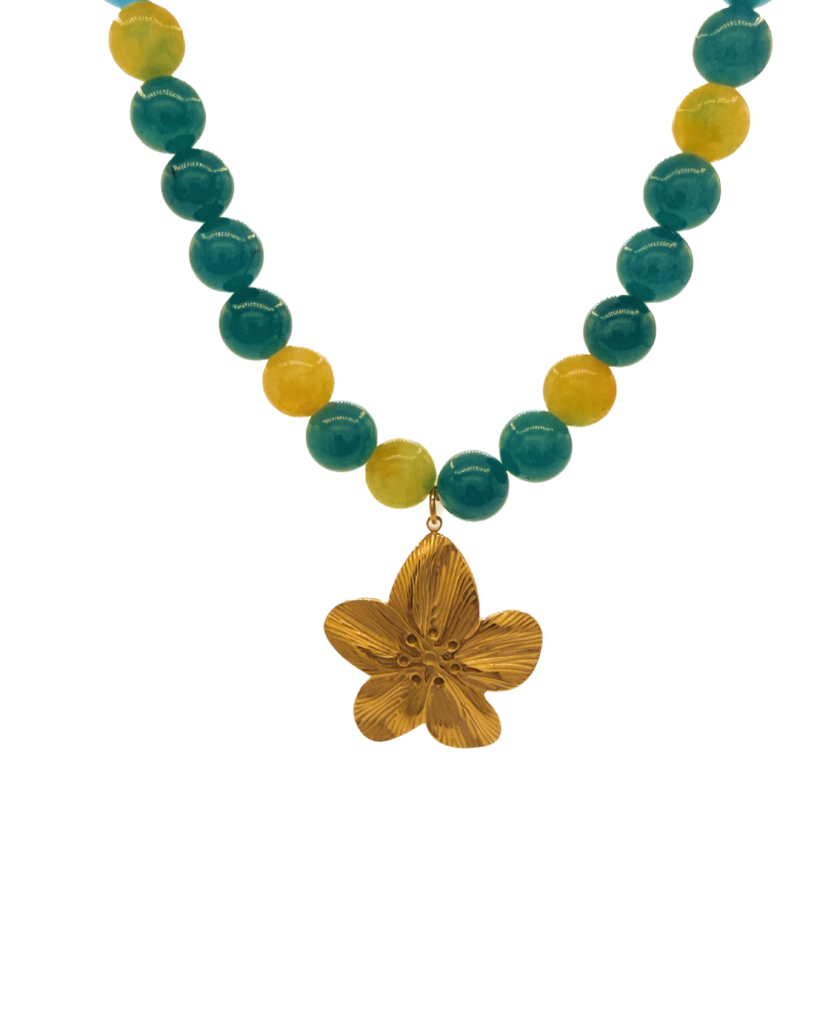 Collar de piedras con charm de acero inoxidable.