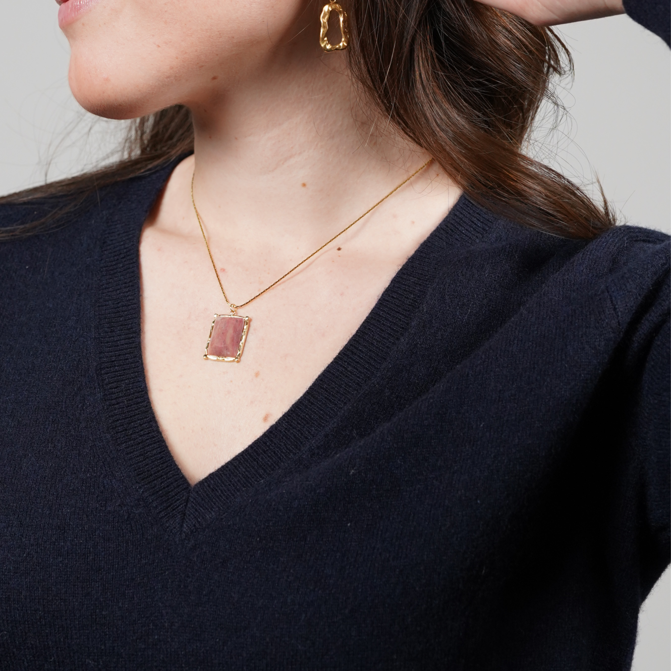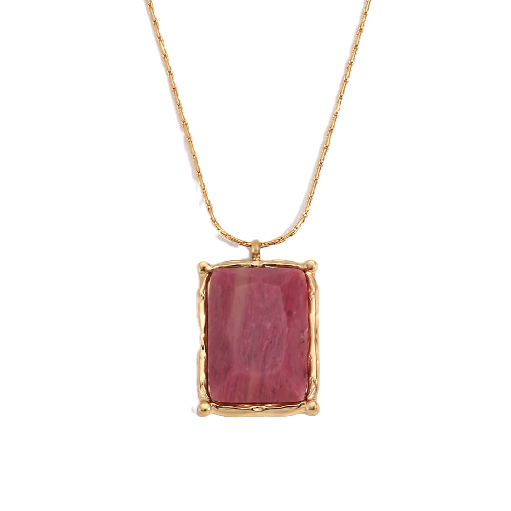 Collar de acero inoxidable chapado en oro de 18K con piedra natural.