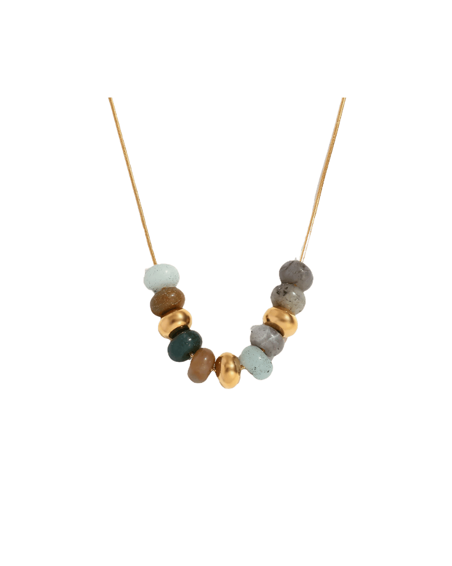 Collar de cadena de serpiente de acero inoxidable chapado en oro de 18K con piedras naturales.